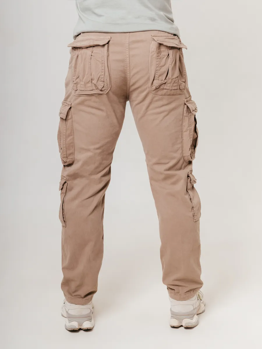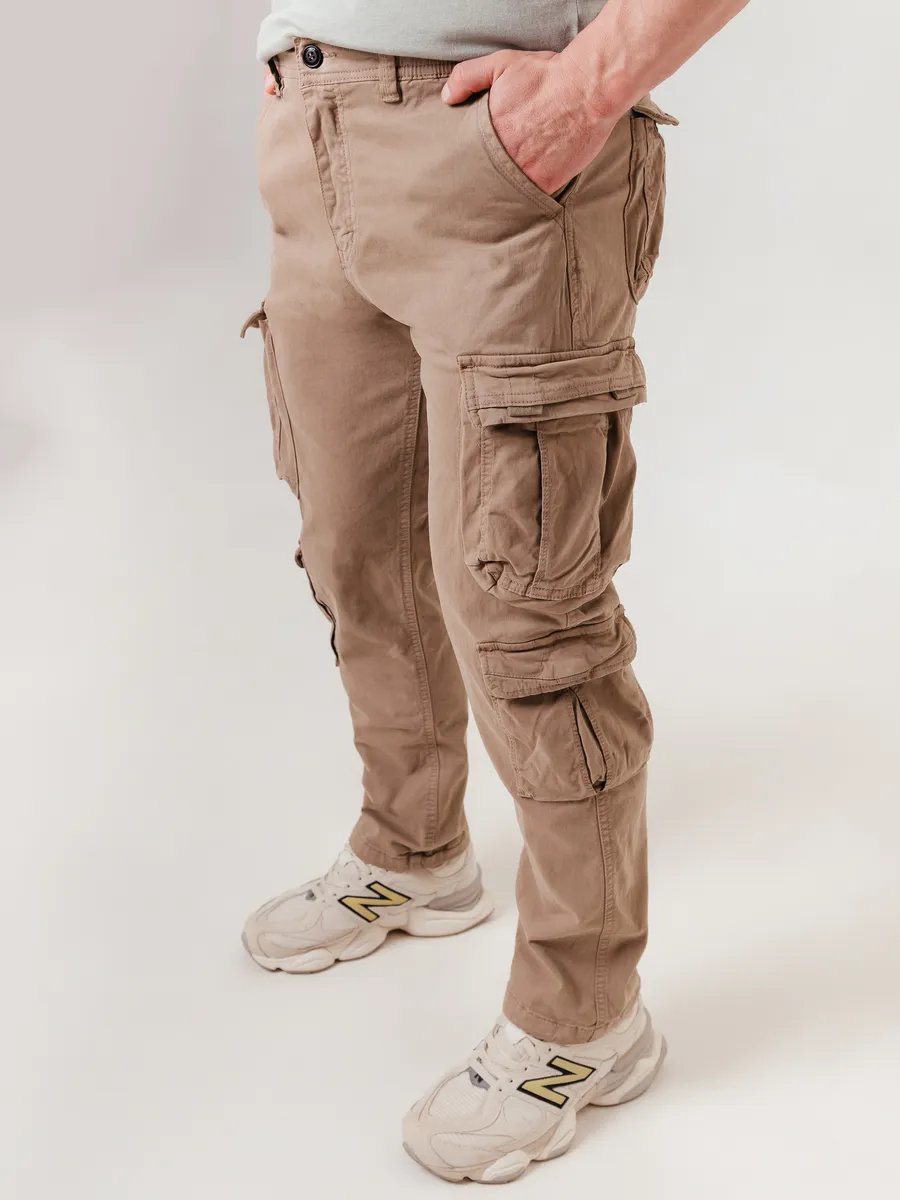 Мужские брюки карго хлопковые в стиле милитари — универсальное решение для тех, кто ценит комфорт, качество и современный вид. Штаны выполнены из натурального хлопка, что обеспечивает приятные тактильные ощущения для кожи и отличную воздухопроницаемость даже в жаркую летнюю или осеннюю погоду, а также актуально для создания повседневного и домашнего образа. Прямой крой и свободная посадка позволяют комфортно двигаться, а материал надежно сохраняет форму изделия даже при активном ритме жизни, что особенно важно для мужчин, выбирающих урбан-стиль или образ в стиле военный. Модель отличается модным и стильным дизайном с элементами классического милитари, идеально вписываясь в гардероб как молодых, так и взрослых мужчин. Главная особенностью этих хлопковых брюк являются вместительные боковые карманы карго, расположенные на бедрах и ягодицах. Они легко вмещают необходимые аксессуары, обеспечивают удобство и освобождают руки. Классический вид карго с несколькими типами карманов повышает функциональность и делает модель практичной для поездок, прогулок и спортивных занятий. Прочные швы, натуральный материал и широкий диапазон размеров позволят выбрать оптимальный вариант для любой фигуры. Благодаря прямому силуэту, штаны сохраняют современный look, не ограничивая движения колена, а хлопковая ткань способствует долговечности и комфорту. Ткань средней плотности подойдет для большинства сезонов — летом сохраняет ощущение прохлады, а осенью и весной легко сочетается с толстовкой, худи, джемпером, лонгсливом, свитером или легкой курткой. Брюки хорошо смотрятся как в casual-образе, так и в офисном или спортивном стиле, поддерживая модный или классический дресс-код. Практичные ремни, петли и шлевки для ремня делают модель еще более универсальной для создания различных сочетаний с джемперами, пиджаками, джинсами или рубашками.