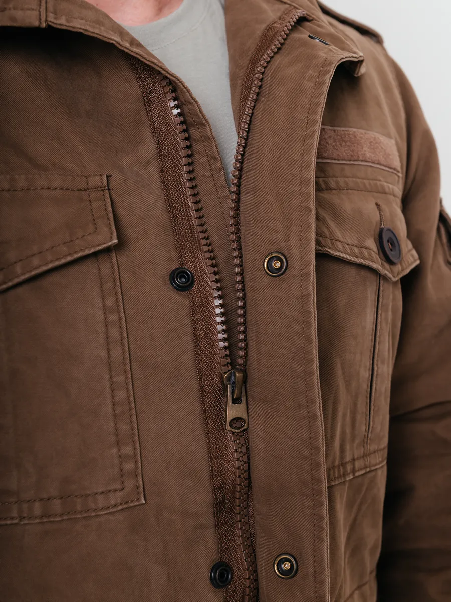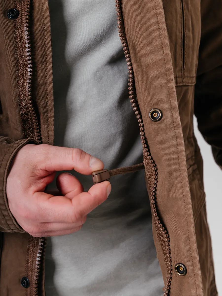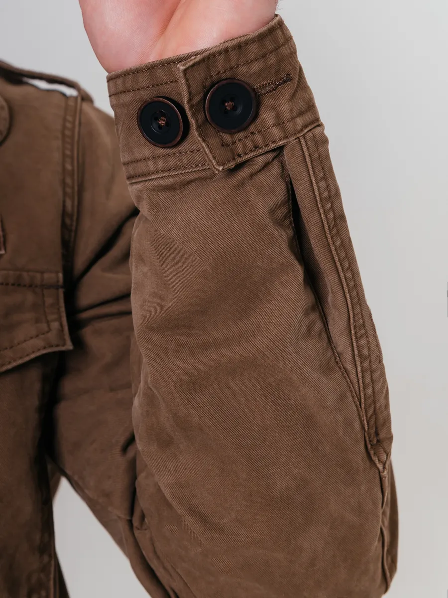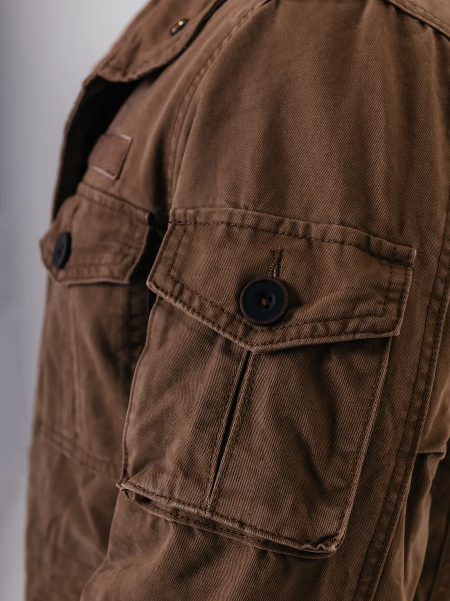 Хлопковая куртка в стиле милитари для мужчин — практичный выбор для летнего и демисезонного периода. Модель универсальна и подходит на весну и осень, когда важна защита от ветра и легкий комфорт без перегрева. Благодаря натуральному хлопковому материалу изделие обеспечивает отличную воздухопроницаемость и приятные тактильные ощущения при носке, что особенно важно в теплое время года.Дизайн вдохновлен трендами милитари, что делает такую верхнюю одежду актуальной как для города, так и для активного отдыха на природе. Лаконичные детали подчеркивают современный стиль мужчины, а удобный покрой не сковывает движения. Классическая застежка на пуговицы или молнию позволяет быстро надеть куртку при необходимости.В коллекции представлены мужские джинсовые вариации, сочетающие в себе практичность джинсовки и функциональность верхней одежды на каждый день. Это отличный вариант для тех, кто ценит надежность материалов и лаконичный внешний вид. Большие размеры позволяют подобрать изделие мужчинам с разным типом фигуры, чтобы каждая посадка была максимально комфортной.Такая мужская вещь гармонично впишется как в повседневный гардероб жителя России, так и станет идеальным спутником для прогулок по парку или поездок за город. Легкая ткань хорошо держит форму даже после многочисленных стирок, сохраняя аккуратный внешний вид на протяжении всего сезона.Фасон ориентирован на современные тенденции: прямой силуэт сочетается с элементами классики из мира джинсовых изделий. Куртки легко комбинируются с футболками, рубашками или свитерами в прохладные вечера весной или осенью. Акцент сделан на удобстве: просторные карманы позволяют разместить все необходимое под рукой — телефон, ключи или другие мелочи.Для мужчин важно чувствовать себя уверенно в любой ситуации — такой вариант верхней одежды подойдет как молодым людям, так и взрослым представителям сильного пола.