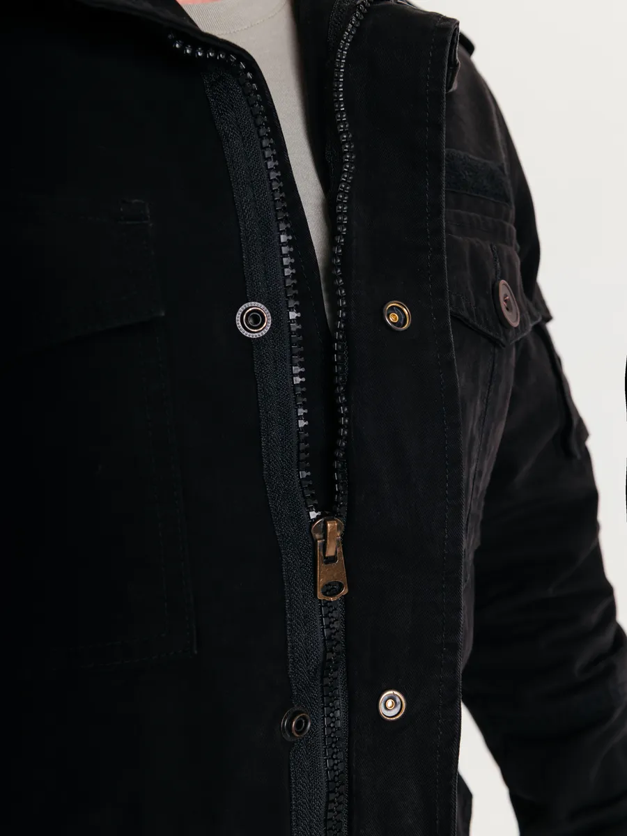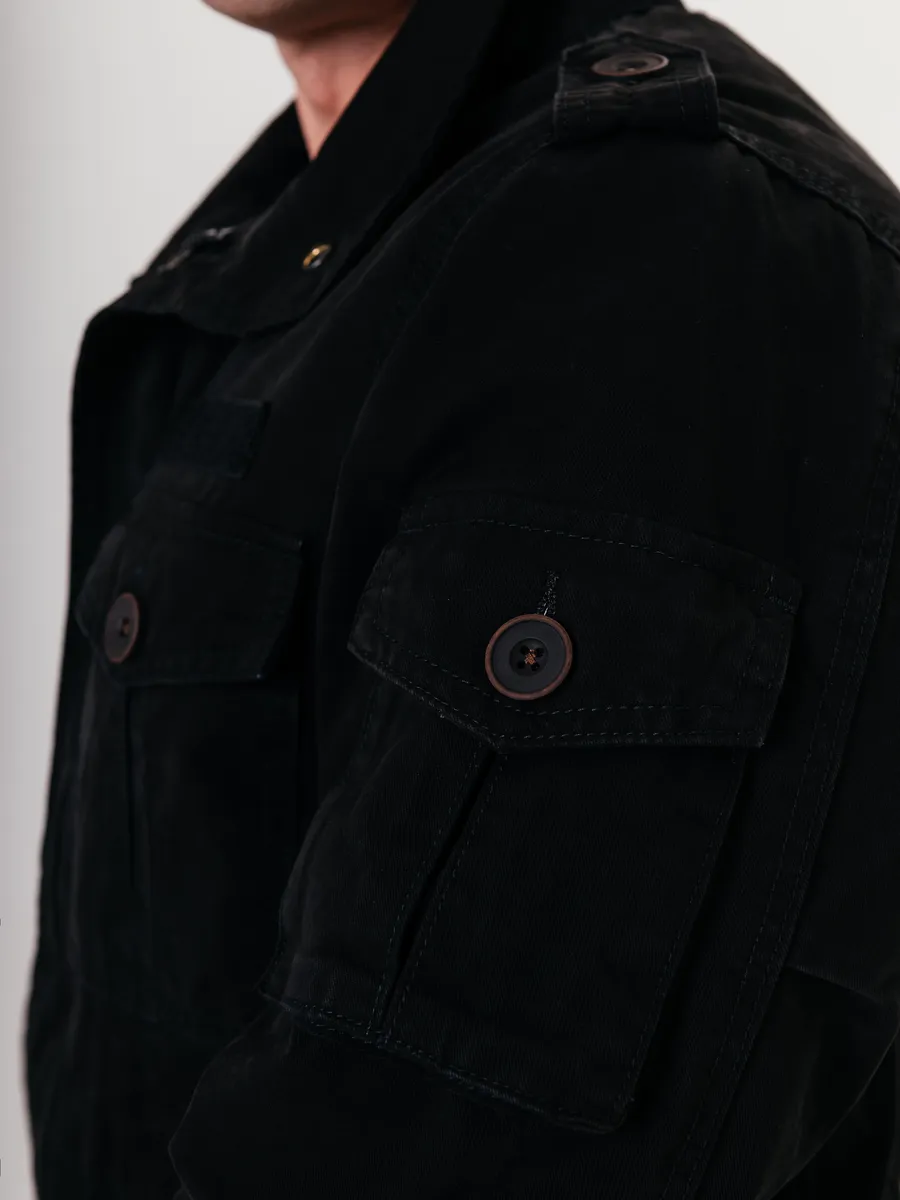 Хлопковая куртка в стиле милитари для мужчин — практичный выбор для летнего и демисезонного периода. Модель универсальна и подходит на весну и осень, когда важна защита от ветра и легкий комфорт без перегрева. Благодаря натуральному хлопковому материалу изделие обеспечивает отличную воздухопроницаемость и приятные тактильные ощущения при носке, что особенно важно в теплое время года.Дизайн вдохновлен трендами милитари, что делает такую верхнюю одежду актуальной как для города, так и для активного отдыха на природе. Лаконичные детали подчеркивают современный стиль мужчины, а удобный покрой не сковывает движения. Классическая застежка на пуговицы или молнию позволяет быстро надеть куртку при необходимости.В коллекции представлены мужские джинсовые вариации, сочетающие в себе практичность джинсовки и функциональность верхней одежды на каждый день. Это отличный вариант для тех, кто ценит надежность материалов и лаконичный внешний вид. Большие размеры позволяют подобрать изделие мужчинам с разным типом фигуры, чтобы каждая посадка была максимально комфортной.Такая мужская вещь гармонично впишется как в повседневный гардероб жителя России, так и станет идеальным спутником для прогулок по парку или поездок за город. Легкая ткань хорошо держит форму даже после многочисленных стирок, сохраняя аккуратный внешний вид на протяжении всего сезона.Фасон ориентирован на современные тенденции: прямой силуэт сочетается с элементами классики из мира джинсовых изделий. Куртки легко комбинируются с футболками, рубашками или свитерами в прохладные вечера весной или осенью. Акцент сделан на удобстве: просторные карманы позволяют разместить все необходимое под рукой — телефон, ключи или другие мелочи.Для мужчин важно чувствовать себя уверенно в любой ситуации — такой вариант верхней одежды подойдет как молодым людям, так и взрослым представителям сильного пола.