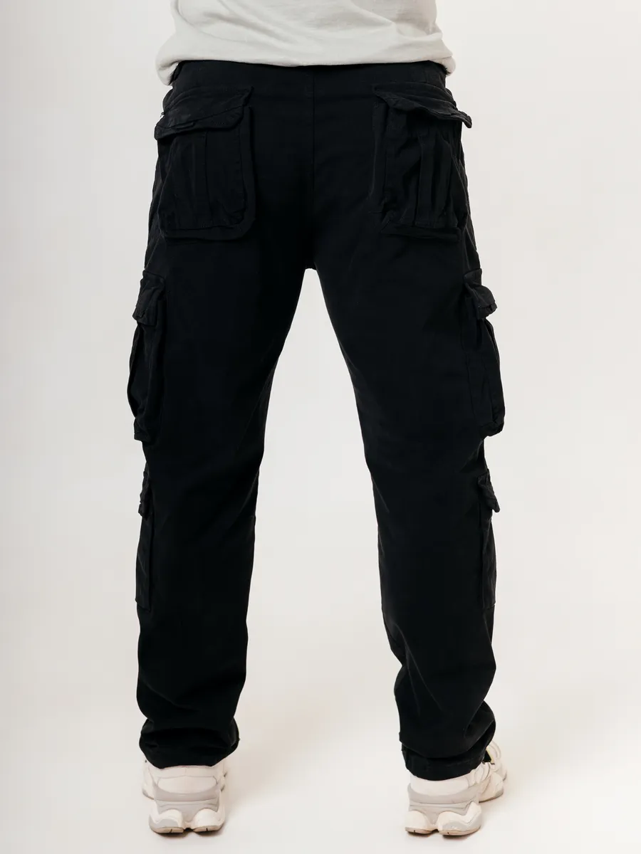 Брюки карго хлопковые в стиле милитари – универсальный выбор для современного мужчины, который ценит качество, комфорт и практичность. Модель выполнена из натурального хлопка, что обеспечивает приятные ощущения для кожи, гипоаллергенность и отличную воздухопроницаемость. Мягкий и прочный материал способствует комфорту даже в течение целого дня, а прямая посадка позволяет свободно двигаться без ограничений, сохраняя стильный и модный вид в любом образе. Черный цвет придает этим штанам сдержанность и универсальность, благодаря чему брюки гармонично сочетаются с различными элементами мужского и спортивного гардероба: от свитера и худи до джемперов, футболок и спортивной обуви. Основной акцент – прочная долговечная конструкция с боковыми накладными карманами, которые подходят для хранения необходимых вещей и освобождают руки во время прогулок, путешествий или деловой активности. Все карманы выполнены с клапанами на застежках, что подчеркивает военный стиль милитари, а также добавляет практичности для активных мужчин, ведущих городской или урбан ритм жизни. Дополнительные боковые карманы придают функциональность, позволяя удобно разместить ключи, телефон, кошелек, не перегружая руки или плечи. Отличный выбор для повседневного и домашнего использования, создания спортивного или офисного образа, прогулок, отдыха на природе и путешествий. За счет свойств хлопка эти прямые брюки легко адаптируются к летним, осенним и даже слегка прохладным дням, сохраняя оптимальный микроклимат для кожи и помогая поддерживать тепло, если выбрать их для прохладного времени. Модель удобна и для городской формы, и для спортивного, и для casual стиля, а также для досуга дома в сочетании со свитером, футболкой или джемпером. Особенно актуальны такие классические джинсы для парней, предпочитающих стиль милитари и современный модный look.