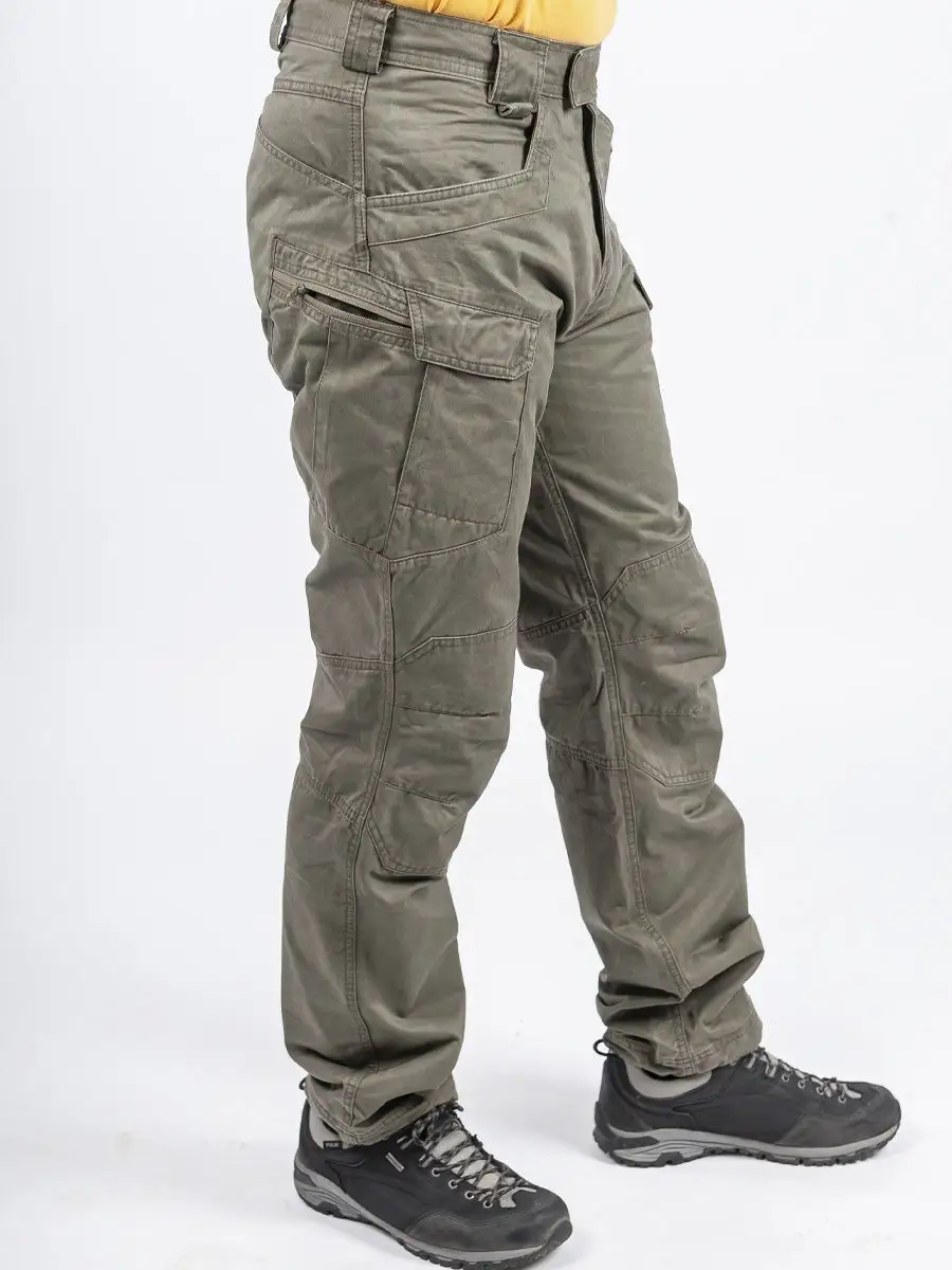 Мужские брюки карго милитари из 100% вареного хлопка — универсальный выбор для тех, кто ценит практичность, комфорт и актуальный стиль Casual. Оригинальный оливковый цвет органично смотрится как в городской среде, так и для прогулок на природе. Прямой крой обеспечивает свободу движений, а современный винтажный дизайн гармонично сочетается и с классической обувью, и с кроссовками. Накладные боковые карманы практичны и вместительны: всего шесть удобных отделений позволят разместить мелочи и держать важные вещи под рукой. Такая конструкция отлично подходит для активного отдыха, туризма и повседневных задач. Материал брюк — износостойкий хлопок, который легко переносит частые стирки, быстро сохнет, приятен на ощупь и подойдет даже для чувствительной кожи. Ткань дышит и создает ощущение комфорта, что особенно важно в летний сезон. Надежные швы гарантируют долговечность изделия и устойчивость к разрывам даже при интенсивном использовании. Удобная застежка на молнии и пояс с петлями под ремень позволяют подобрать максимально комфортную посадку на любой тип мужской фигуры, в том числе на большой рост — до 2 метров. Мужские хлопковые брюки карго легко адаптируются под casual-образ, офисный и урбан-стиль. Их можно носить со свитером, футболкой, трикотажным джемпером, худи, лонгсливом, домашней или спортивной одеждой — благодаря лаконичной форме они становятся универсальной базой гардероба. Прочный накладный карман с застежкой-зипкой добавляет оригинальности и практичности для городского образа, рыбалки, походов или работы на свежем воздухе. Цвет брюк хорошо комбинируется с коричневым, серым, черным, белым, бежевым, что позволяет создавать разные look-и для разных сезонов — весна, лето, осень. Штаны подходят для активных мужчин, предпочитающих классический и строгий стиль с элементами повседневной свободы. Качественный материал не требует специального ухода, не теряет форму после многочисленных стирок, а удобные широкие карманы подчеркивают их практичность.